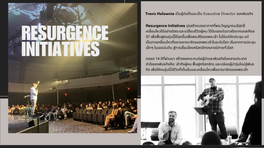 องค์กรที่รับผิดชอบ : Resurgence Initiatives
